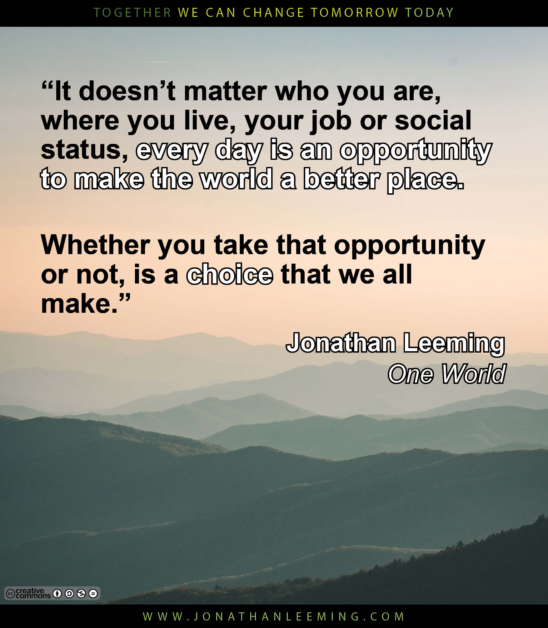 Spread the message of One World by downloading this One World social media meme, and uploading it to your social media page.